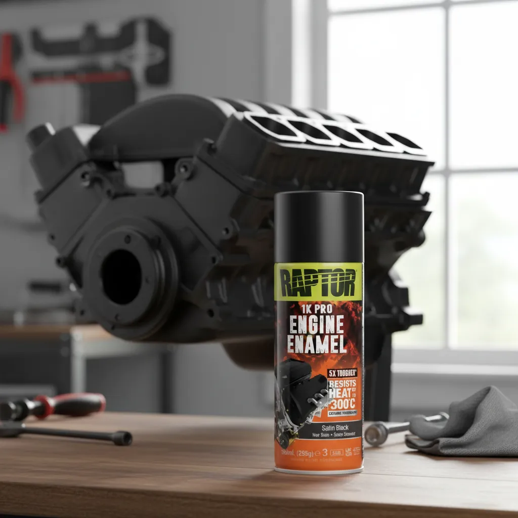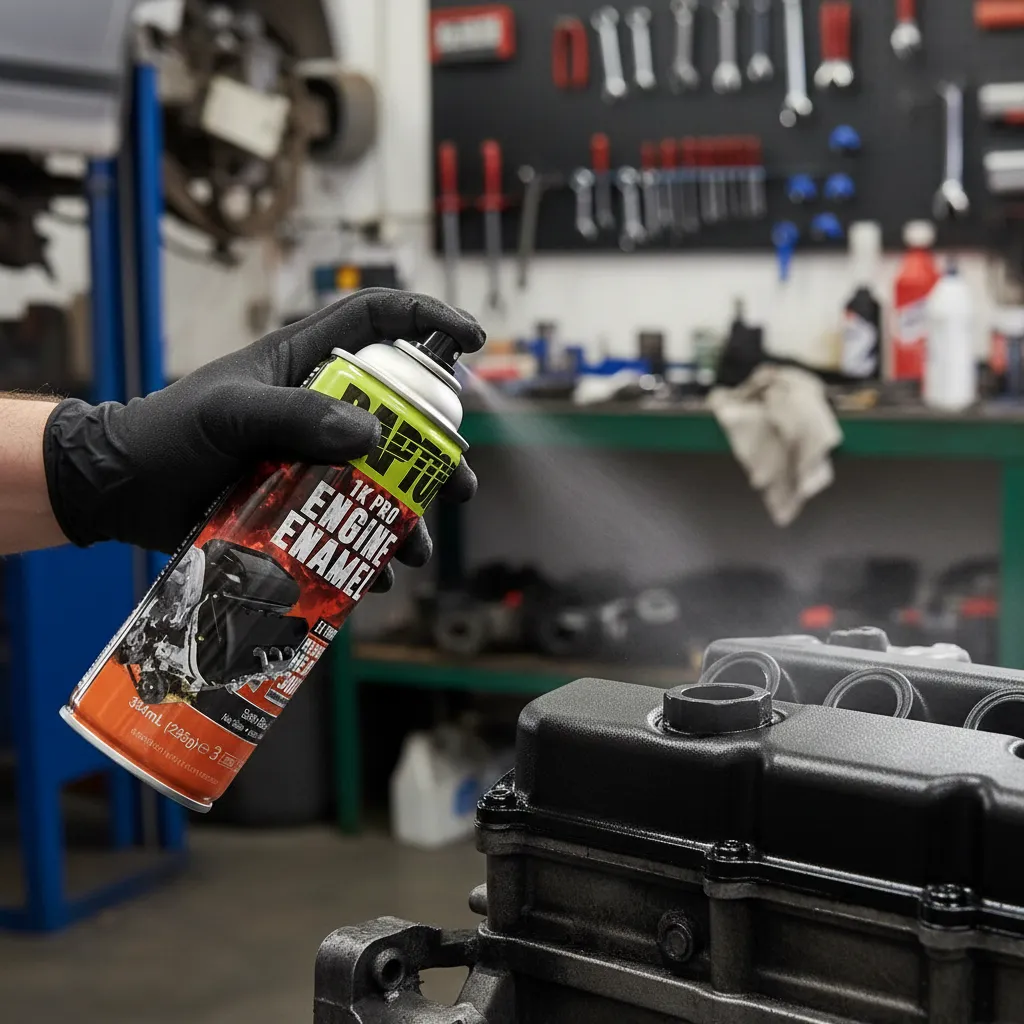 Esmalte de calidad profesional para motor, ideal para usar en bloques de motor, accesorios y otras superficies del compartimento del motor.